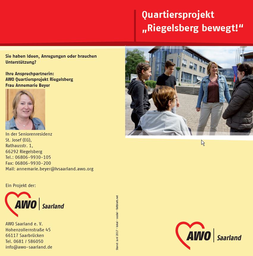 Das Quartiersprojekt „Riegelsberg bewegt!“ bietet Beratungs- und Mitwirkungsangebote für Anwohnerinnen und Anwohner im Zentrum von Riegelsberg. Ziel des Projektes ist, die Lebensqualität der Menschen in Riegelsberg zu verbessern und die Versorgungsstruktur sowie das Umfeld vor Ort in Zusammenarbeit mit der Gemeinde zu stärken.