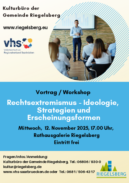 Kulturbüro der Gemeinde Riegelsberg, Tel.: 06806/930-162/181, gemeinde(at)riegelsberg.de